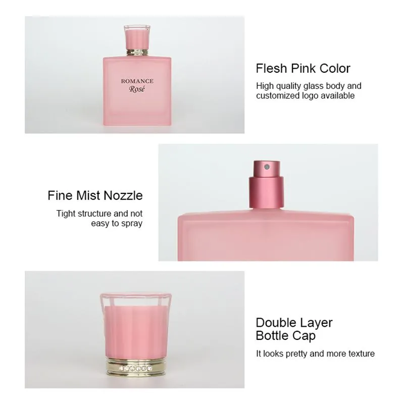 Bu parfümü pembe kare şişede romantik bir pembe olarak tasarladık ve parlak renkleri ile insanların kalplerine dokunuyor. Pembenin özelliği ve ayırt edici özelliği, tıpkı o kalıcı aşk filmi"Titanic", kahramanı ve kahramanın sıcak gün batımında kucaklaşması gibi, insanları gördüklerinde güzel aşkı düşündürür. Okyanustaki köpük, güneşin parıltısı altında pembeye dönmüş gibi görünüyor. Aşkın sertliğini ve sonsuzluğunu temsil etmek için cömert ve özlü bir kare şişe kullanıyoruz; zarif bir şekilde oyulmuş şişe tıpası, aşkın asaletini ve kutsallığını temsil eder. Bu parfüm şişesi, güçlü gül bazlı parfümleri tutmak için uygundur, böylece aşık olan her kıza sahip olabilir ve sabahları bir gül kadar narin olacaktır.
